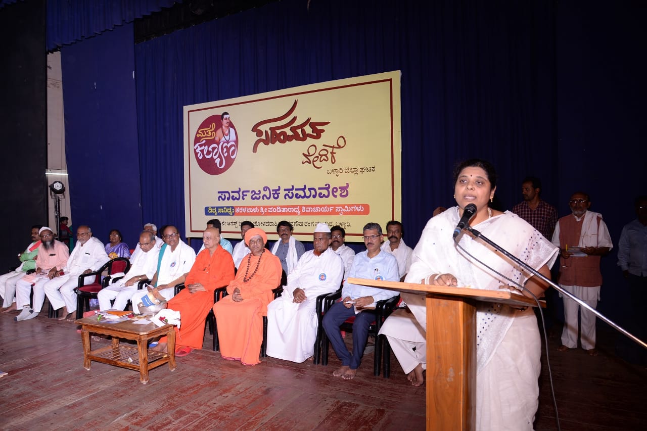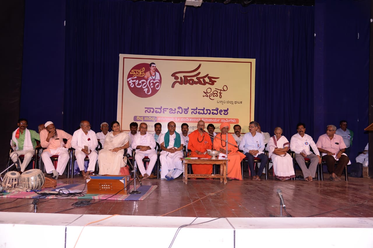 ಸಭೆಯ ಅಧ್ಯಕ್ಷತೆ ವಹಿಸಿದ್ದ ಶ್ರೀ ಪ್ರಭುಸ್ವಾಮಿಗಳು ಮಾತನಾಡಿ ಸರ್ವ ಧರ್ಮ ಸಮನ್ವಯ ಸಾರುವ ಕೆಲಸ ಮತ್ತೆ ಕಲ್ಯಾಣದ್ದು. ಬಳ್ಳಾರಿಯಲ್ಲಿ ಕನ್ನಡ – ತೆಲಗು ಭಾಷಾ ಸಾಮರಸ್ಯವಿದೆ. ಬುದ್ಧ, ಪೈಗಂಬರ್, ಏಸು ಮುಂತಾದ ಎಲ್ಲರೂ ಕಲ್ಯಾಣವನ್ನು ಬಯಸಿದ್ದರು. ಸಾಧು ಸಂತರು ಜಾತಿ, ಮತ, ದೇಶ, ಭಾಷೆಗಳೆನ್ನುವ ಸಂಕುಚಿತತೆಯನ್ನು ತೊಡೆಯಬೇಕೆಂದರು. ಧರ್ಮಗಳು ಆಚರಣೆಯಲ್ಲಿ ಅಲ್ಲ; ನಡೆಯಲ್ಲಿ ಇರಬೇಕು. ಧರ್ಮಗಳ ಸಾಮರಸ್ಯವನ್ನು ಕಾಪಾಡಿಕೊಳ್ಳುವುದು ಇಂದಿನ ತುರ್ತು. ಧರ್ಮಗಳ ಬಗ್ಗೆ ವಿತಂಡವಾದ ಬೇಡ. ಬಸವಣ್ಣ ಅಂದ್ರೆ ಕನ್ನಡ; ಕನ್ನಡ ಅಂದ್ರೆ ಬಸವಣ್ಣ. ದೇವರ ಭಾಷೆ ಸಂಸ್ಕೃತ. ಸಾಮಾನ್ಯರ ಭಾಷೆ ಕನ್ನಡ. ಇಂಥ ಕನ್ನಡವನ್ನೇ ದೇವ ಬಾಷೆಯಾಗಿಸಿದವರು ಶರಣರು. ಶರಣರ ಕಾಯಕ-ದಾಸೋಹ ಪ್ರಜ್ಞೆ ನಮಗೆ ಬಂದರೆ ಜಗತ್ತಿನಲ್ಲಿಯೇ ಬಡತನವಿರುವುದಿಲ್ಲ. ಜಾತಿ ಮನೆಯೊಳಗಿರಬೇಕೇ ಹೊರತು ಸಾರ್ವಜನಿಕವಾಗಿ ಬೇಡ ಎಂದರು.