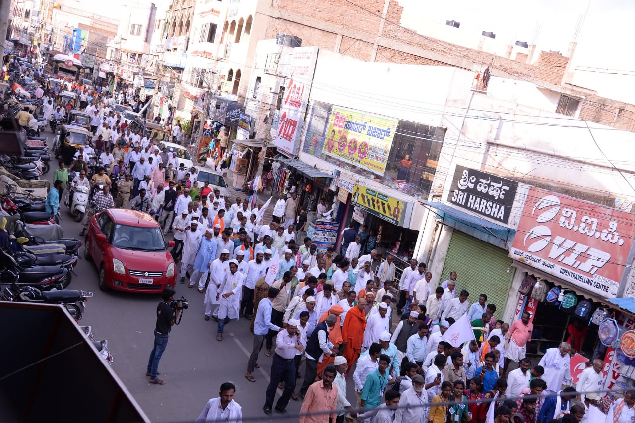 ಇಲ್ಲಿನ ಜೋಳದರಾಶಿ ದೊಡ್ಡನಗೌಡ ರಂಗಮಂದಿರದಲ್ಲಿ `ಮತ್ತೆ ಕಲ್ಯಾಣ’ ಕಾರ್ಯಕ್ರಮದ ಅಂಗವಾಗಿ ಆಯೋಜಿಸಿದ್ದ ಸಾರ್ವಜನಿಕ ಸಮಾವೇಶದ ನೇತೃತ್ವ ವಹಿಸಿದ್ದ ಶ್ರೀ ಪಂಡಿತಾರಾಧ್ಯ ಶಿವಾಚಾರ್ಯ ಸ್ವಾಮಿಗಳು ಮಾತನಾಡಿ ಭಾರತ ಬಹುತ್ವದ ದೇಶ. ಆದರೆ ಇಂದು ವೈವಿಧ್ಯತೆಯಲ್ಲಿ ಏಕತೆಯನ್ನು ಕಾಪಾಡಿಕೊಳ್ಳುವುದು ತುಂಬ ಕಷ್ಟಕರವಾಗುತ್ತಿದೆ. ಧರ್ಮದಲ್ಲೂ ಕೊಳ್ಳುಬಾಕು ಸಂಸ್ಕೃತಿ ಕಾಲಿಟ್ಟದೆ. ಶಿಬಿರಗಳ ಮೂಲಕ ಆತ್ಮಾಸಾಕ್ಷಾತ್ಕರ ಸಾಧ್ಯವಿಲ್ಲ. ಅಂತರಂಗ ಶುದ್ಧಿಯಾಗದೆ; ಆತ್ಮಾಸಾಕ್ಷಾತ್ಕರ ಸಾಧ್ಯವಿಲ್ಲ. ಅನೇಕ ಪ್ರಾಣಿ-ಪಕ್ಷಿಗಳಿಗೆ ಮನುಷ್ಯನಿಗಿಂತ ಅದ್ಭುತ ಜ್ಞಾನವಿದೆ. ಆದರೆ ಅವುಗಳಿಗೆ ತನ್ನ ತಾನಾರೆಂದು ತಿಳಿಯುವ ಜ್ಞಾನವಿಲ್ಲ. ತನ್ನ ತಾನಾರೆಂದು ತಿಳಿಸುವುದೇ ನಿಜವಾದ ಧರ್ಮ. ಧರ್ಮ ತನ್ನೊಳಗೆ ತಾನೇ ಸಾಧನೆ ಮಾಡುವಂಥದ್ದು. ಧರ್ಮ ಅಂತರಂಗದ ಕೃಷಿಯಾಗಬೇಕೇ ಹೊರತು; ಬಾಹ್ಯವಾಗಿ ತೋರುವ ಆಡಂಬರವಾಗಬಾರದು. ಶರಣರ ದೃಷ್ಟಿಯಲ್ಲಿ ಸ್ವರ್ಗ-ನರಕಗಳು ಬೇರೆ ಎಲ್ಲಿಯೂ ಇಲ್ಲ. `ಅಯ್ಯ ಎಂದರೆ ಸ್ವರ್ಗ, ಎಲವೋ ಎಂದರೆ ನರಕ’. ಯಾವ ಧರ್ಮಗಳೂ ಮೇಲೂ ಅಲ್ಲ ಕೀಳೂ ಅಲ್ಲ. ಶ್ರೇಷ್ಠತೆ-ಕನಿಷ್ಠತೆ ಬರುವಂಥದ್ದು ಧರ್ಮದ ಅನುಯಾಯಿಗಳ ನಡವಳಿಕೆಗಳಿಂದ. ಮತ್ತೆ ಕಲ್ಯಾಣದಲ್ಲಿ ಎಲ್ಲ ಧರ್ಮಿಯರೂ ಇದ್ದು, ಇದು ನಮ್ಮದು ಎಂದು ಭಾಗವಹಿಸುತ್ತಿದ್ದಾರೆ. ಇಂಥ ಸೌಹಾರ್ಧತೆ ಎಲ್ಲ ಕಾಲಕ್ಕೂ ಇರಬೇಕೇ ಹೊರತು; ನಟನೆಯಾಗಬಾರದು. ಮಾನವೀಯತೆಯನ್ನು ಉಳಿಸಿಕೊಳ್ಳುವ ನಿಟ್ಟಿನಲ್ಲಿ ಎಲ್ಲ ಧರ್ಮೀಯರೂ ಪ್ರಾಮಾಣಿಕ ಪ್ರಯತ್ನ ಮಾಡಬೇಕು. ಶರಣರು ಕಾಲ, ಕಾಸು, ಕಾಯಕಕ್ಕೆ ಮಹತ್ವ ಕೊಟ್ಟಿದ್ದರು. ಇದೇ ಮಹತ್ವವನ್ನು ನಾವೂ ನಮ್ಮ ಬದುಕಿನಲ್ಲಿ ಕೊಟ್ಟರೆ ತನ್ನಿಂದ ತಾನೇ ಅಭಿವೃದ್ಧಿ ಹೊಂದುವೆವು. `ಮತ್ತೆ ಕಲ್ಯಾಣ’ ಸಂಭ್ರಮಿಸುವ, ಪೋಟೋ ತೆಗೆಸಿಕೊಳ್ಳುವ ಕಾರ್ಯಕ್ರಮವಲ್ಲ; ಅರಿವನ್ನು ಮೈಗೂಡಿಸಿಕೊಳ್ಳುವ ಕಾರ್ಯಕ್ರಮ. ಅಜ್ಞಾನ, ಜಾತೀಯತೆ, ಮೌಢ್ಯ, ಭ್ರಷ್ಟಾಚಾರ, ಅತಿವೃಷ್ಟಿ, ಅನಾವೃಷ್ಟಿಯಂಥ ಸಮಸ್ಯೆಗಳನ್ನು ವಚನಗಳ ಅರಿವಿನಲ್ಲಿ ಪರಿಹರಿಸಿಕೊಳ್ಳುವ ಪ್ರಯತ್ನ ಮಾಡಬೇಕು. ಇಲ್ಲಿನ ಸಹಮತ ವೇದಿಕೆ ತನ್ನ ಸಂಘಟನೆಯನ್ನು ಮುಂದುವರಿಸಿ ಜಾತಿ, ಕೋಮು ಗಲಭೆಗಳಾಗದೆ ಸಾಮರಸ್ಯವನ್ನು ಮೂಡಿಸುವ ಕಾರ್ಯ ಮಾಡಬೇಕು ಎಂದರು.