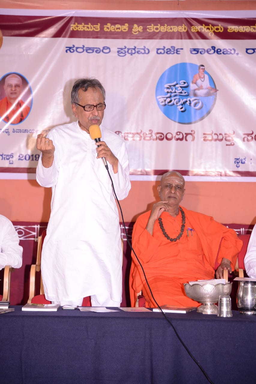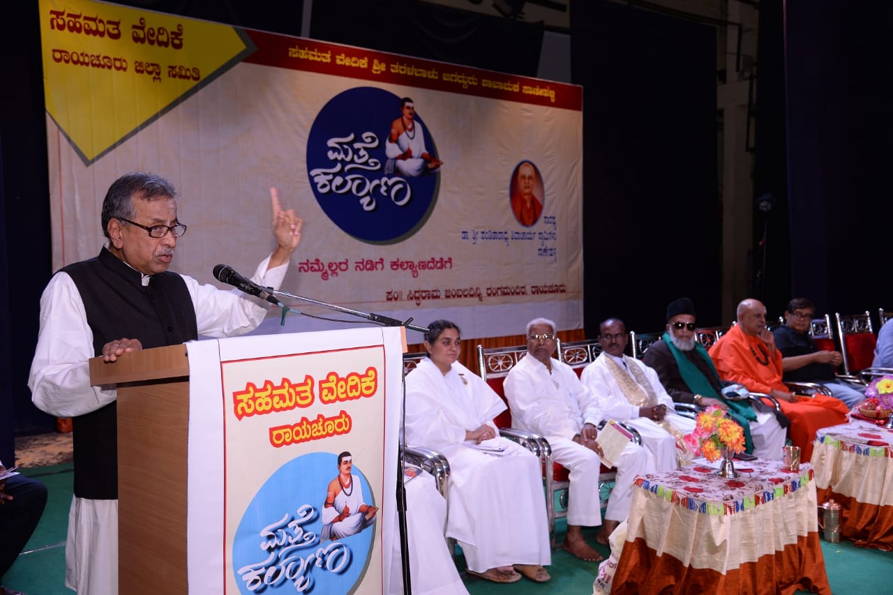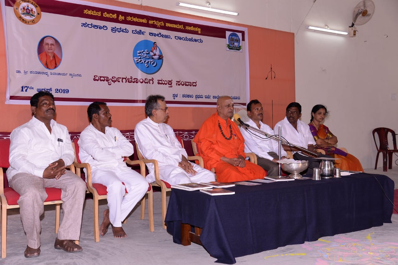 ಆಗಸ್ಟ್ 17, ರಾಯಚೂರು; `ಮತ್ತೆ ಕಲ್ಯಾಣ’ದ ನಿಮಿತ್ತ ಇಲ್ಲಿನ ಸರಕಾರಿ ಪ್ರಥಮ ದರ್ಜೆ ಕಾಲೇಜಿನಲ್ಲಿ ಏರ್ಪಡಿಸಿದ್ದ ವಿದ್ಯಾರ್ಥಿಗಳೊಂದಿಗೆ ಸಂವಾದ ಕಾರ್ಯಕ್ರಮದಲ್ಲಿ ಶ್ರೀ ಪಂಡಿತಾರಾಧ್ಯ ಶಿವಾಚಾರ್ಯ ಸ್ವಾಮಿಗಳು ಪ್ರಶ್ನೆಗಳಿಗೆ ಉತ್ತರಿಸುತ್ತ ಇಂದಿನ ವಿದ್ಯಾವಂತರಿಂದಲೇ ಜಗತ್ತಿಗೆ ಬಹುದೊಡ್ಡ ಹಾನಿ ಆಗ್ತಾ ಇದೆ. ನಾವು ಹೆಚ್ಚು ಹೆಚ್ಚು ಶಿಕ್ಷಣ ಪಡೆದ ಹಾಗೆ ಹೆಚ್ಚು ಹೆಚ್ಚು ಭ್ರಷ್ಟರಾಗುತ್ತಿದ್ದೇವೆ. ಹಿಂದೆ ಗುರುಕುಲ ಶಿಕ್ಷಣ ಪದ್ಧತಿಯಲ್ಲಿ ವ್ಯಕ್ತಿಯ ಸರ್ವಾಂಗೀಣ ವಿಕಾಸಕ್ಕೆ ನೆರವಾಗುವ ಶಿಕ್ಷಣ ದೊರೆಯುತ್ತಿತ್ತು. ದೇಹ, ಮನಸ್ಸು, ಬುದ್ಧಿಗೆ ಚೈತನ್ಯ ದೊರೆಯುತ್ತಿತ್ತು. ಶಿಕ್ಷಣ ಪ್ರತಿಯೊಬ್ಬ ವ್ಯಕ್ತಿಯ ಮೂಲಭೂತ ಹಕ್ಕು. ಕೇವಲ ಪದವಿ ಪಡೆದು ಉದ್ಯೋಗ ಮಾಡುವುದಕ್ಕಷ್ಟೇ ಶಿಕ್ಷಣ ಅಲ್ಲ. ವಿದ್ಯಾರ್ಥಿಗಳಿಗೆ ವ್ಯಾವಹಾರಿಕ, ಆಧ್ಯಾತ್ಮಕ ಮತ್ತು ನೈತಿಕ ಶಿಕ್ಷಣ ನೀಡಬೇಕು. 12 ನೆಯ ಶತಮಾನದ ಶರಣರ `ಅನುಭವ ಮಂಟಪ’ದಲ್ಲಿ ಮನೋಬಲ, ಆತ್ಮವಿಶ್ವಾಸ, ಧೀಃಶಕ್ತಿಯನ್ನು ಬೆಳೆಸುವ ಕೆಲಸ ನಡೆಯುತ್ತಿತ್ತು. ಸಮಾಜದಲ್ಲಿ ತಲೆಎತ್ತಿ ಬದುಕುವಂಥ ಅನೌಪಚಾರಿಕ ಶಿಕ್ಷಣ ದೊರೆಯುತ್ತಿತ್ತು. ಎಲ್ಲ ಕ್ಷೇತ್ರಗಳಲ್ಲಿ ಹೊಣೆಗಾರಿಕೆಯಿಂದ ತಪ್ಪಿಸಿಕೊಳ್ಳುವುದನ್ನು ಕಾಣುತ್ತೇವೆ. ಕಾಯಕ ಶ್ರದ್ಧೆ, ದಾಸೋಹ ಪ್ರಜ್ಞೆ, ಪೂಜಾ ವಿಧಾನ ಶಿಕ್ಷಣದ ಮೂಲಕ ಆಗಬೇಕಾಗಿದೆ. ದುಡಿಯದೇ ಧನ ಸಂಪಾದಿಸುವ ವ್ಯಕ್ತಿಗೆ ಮಾನ್ಯತೆ ಹೆಚ್ಚು ದೊರೆಯುತ್ತಿದೆ. ಇದನ್ನು ಹೊಗಲಾಡಿಸಿ ಕಾಯಕ ಶ್ರದ್ಧೆಯನ್ನು ಬೆಳೆಸಿಕೊಳ್ಳಬೇಕು. ಶರಣರು ಕಾಯಕ ಶ್ರದ್ಧೆಗೆ ವಿಶೇಷ ಹೊತ್ತು ನೀಡಿದ್ದರು. ಗುರು, ಲಿಂಗ, ಜಂಗಮ ಮುಂದಿದ್ದಡೂ ಕಾಯಕ ಬಿಡಬಾರದೆನ್ನುವ ಸಂಕಲ್ಪ ಅವರದ್ದಾಗಿತ್ತು. ದಾನ ಬೇರೆ, ದಾಸೋಹ ಬೇರೆ. ದಾನ ಕೊಡುವ ಶಕ್ತಿ ಇರುವುದು ದೇವರಿಗೆ. ದಾಸೋಹ ಕೊಡುವ ಶಕ್ತಿ ಇರುವುದು ನರರಿಗೆ. ಈ ಹಿನ್ನೆಲೆಯಲ್ಲಿ ದೇವರ ದಾಸಿಮಯ್ಯನವರು `ಇಳೆ ನಿಮ್ಮ ದಾನ, ಬೆಳೆ ನಿಮ್ಮ ದಾನ, ಸುಳಿದು ಸೂಸುವ ಗಾಳಿ ನಿಮ್ಮ ದಾನ ಎಂದಿರುವುದು. ಗುಡಿಗೆ ಹೋಗಿ ಸ್ಥಾವರವನ್ನ ಪೂಜಿಸುವುದಕ್ಕಿಂತ ದೇಹವನ್ನೇ ದೇವಾಲಯ ಮಾಡಿಕೊಂಡು ನಮ್ಮೊಳಗಿರುವ ಶಿವಚೈತನ್ಯದ ಮೂಲಕ ಅಂಗೈಯಲ್ಲಿ ಲಿಂಗವನ್ನು ಪೂಜೆ ಮಾಡಿಕೊಳ್ಳುವ ಬಗೆಯನ್ನು ಶರಣರು ತಿಳಿಸಿದ್ದಾರೆ. ಜನ ಅನೇಕ ಮೌಢ್ಯಗಳಿಗೆ ತುತ್ತಾಗಿ ಬದುಕನ್ನೇ ನರಕ ಮಾಡಿಕೊಳ್ಳುತ್ತಿದ್ದಾರೆ. ಈ ಮೌಢ್ಯದಿಂದ ವಿದ್ಯಾರ್ಥಿಗಳು ಹೊರ ಬರಬೇಕು. ದೇವರನ್ನು ಕಾಣಲು ಶ್ರದ್ಧೆ ಮತ್ತು ಗಟ್ಟಿತನ ಬೇಕು. ನೈತಿಕ ಮೌಲ್ಯ ಕುಸಿತಕ್ಕೆ ಕಾರಣ ಸಂಪತ್ತಿನ ಸಂಗ್ರಹದ ಮೋಹ. ಬಸವಾದಿ ಶಿವಶರಣರು ಸಮಾಜದಲ್ಲಿದ್ದ ಅಸಮಾನತೆಗಳನ್ನು ನಿವಾರಣೆ ಮಾಡುವ ಸಲುವಾಗಿಯೇ ಏಕದೇವೋಪಾಸನೆಯನ್ನು ಜಾರಿಗೆ ತಂದರು. ಹಿಂದುಳಿದ, ತುಳಿತಕ್ಕೆ ಒಳಗಾದ ದೀನದಲಿತರಿಗ ಆರ್ಥಿಕ ಸ್ಥಾನಮಾನದ ಜೊತೆಗೆ ಸಾಮಾಜಿಕ ಸ್ಥಾನಮಾನ ಸಿಗುವ ತನಕ ಮೀಸಲಾತಿ ಬೇಕು ಎಂದರು.