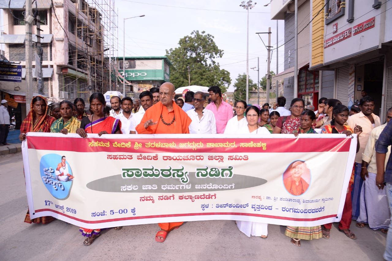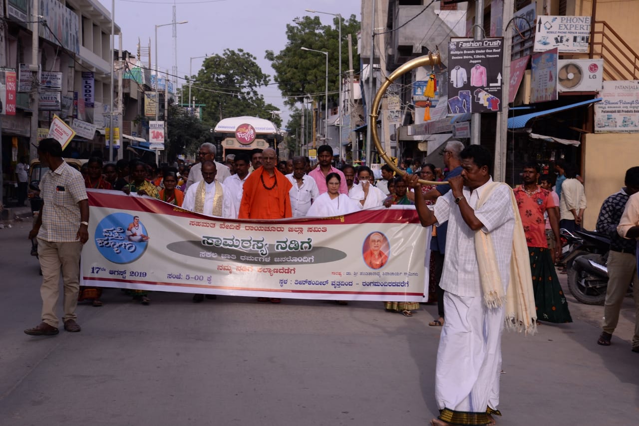 ಆರಂಭದಲ್ಲಿ ಶಿವಸಂಚಾರದ ಕಲಾವಿದರು ವಚನಗೀತೆಗಳನ್ನು ಹಾಡಿದರು. ಅಂಬಣ್ಣ ಅರೋಲಿಕರ್ ಸ್ವಾಗತಿಸಿದರೆ, ಗಿರಿಜಾ ರಜಶೇಖರ್ ಮತ್ತು ಮಂಜುನಾಥ ಐಲಿ ಕಾರ್ಯಕ್ರಮ ನಿರ್ವಹಿಸಿ ಮೋಕ್ಷಮ್ಮ ವಂದಿಸಿದರು. ತೀನ್ ಕಂದೀಲ ವೃತ್ತದಿಂದ ಸಾಮರಸ್ಯ ನಡಿಗೆ ಆರಂಭವಾಯಿತು. ವಿವಿಧ ಧರ್ಮದ ಮುಖಂಡರು, ಜನಪ್ರತಿನಿಧಿಗಳು, ವಿದ್ಯಾರ್ಥಿಗಳು, ಸಾರ್ವಜನಿಕರು, ಕಲಾತಂಡಗಳು ಶರಣರ ಸ್ತಬ್ಧ ಚಿತ್ರಗಳನ್ನೊಳಗೊಂಡ ವಿಶೇಷ ವಾಹನದ ಜೊತೆ ಪಂಡಿತ್ ಸಿದ್ಧರಾಮ ಜಂಬಲದಿನ್ನಿ ರಂಗಮಂದಿರವನ್ನು ತಲುಪಿದರು. ವೇದಿಕೆಯ ಮೇಲೆ ವಿವಿಧ ಧರ್ಮದ ಮುಖಂಡರು ಉಪಸ್ಥಿತರಿದ್ದರು.