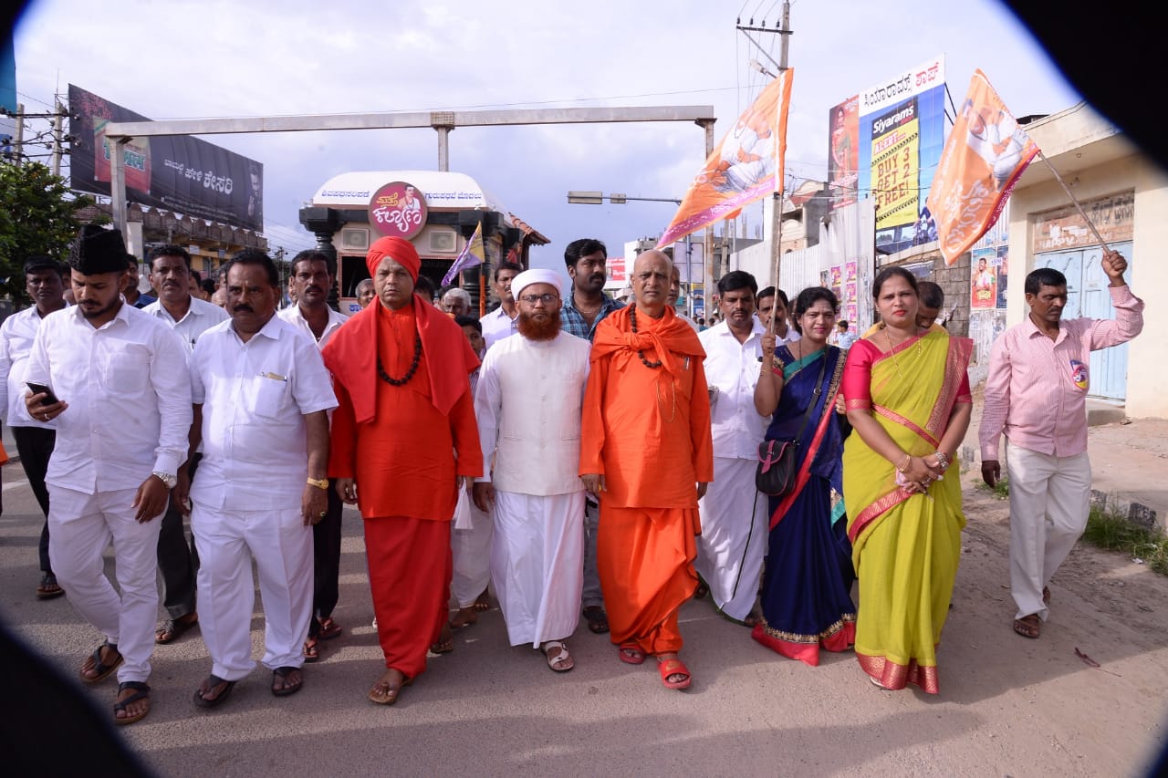 ಶ್ರೀ ಬಸವೇಶ್ವರ ದೇವಸ್ಥಾನದಿಂದ ಆರಂಭವಾದ ಸಾಮರಸ್ಯ ನಡಿಗೆಯಲ್ಲಿ ಜನಪ್ರತಿನಿಧಿಗಳು, ವಿವಿಧ ಧಾರ್ಮಿಕ ಮುಖಂಡರು, ವಿದ್ಯಾರ್ಥಿಗಳು, ಕಲಾ ತಂಡಗಳು, ವಚನಕಾರರ ಸ್ಥಬ್ದ ಚಿತ್ರಗಳನ್ನೊಳಗೊಂಡ ವಿಶೇಷ ವಾಹನದೊಂದಿಗೆ ಶ್ರೀಮತಿ ಪಾರ್ವತಮ್ಮ ಶಾಮನೂರು ಶಿವಶಂಕರಪ್ಪ ಕಲ್ಯಾಣ ಮಂಟಪಕ್ಕೆ ಬಂದು ತಲುಪಿದರು. ನೆರೆ ಸಂತ್ರಸ್ಥರ ನಿಧಿ 22714 ರೂಪಾಯಿಗಳು ಸಂಗ್ರಹವಾಯಿತು.
