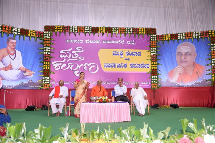 ಸಭೆಯ ಅಧ್ಯಕ್ಷತೆ ವಹಿಸಿದ್ದ ವಿ ಸಿದ್ಧರಾಮ ಶರಣರು ಮಾತನಾಡಿ `ಮತ್ತೆ ಕಲ್ಯಾಣ’ ಜಾತ್ರೆಯಲ್ಲ; ಪರಿವರ್ತನೆಯ ಅಭಿಯಾನ. ಪಂಡಿತಾರಾಧ್ಯ ಶ್ರೀಗಳು ಜಾತಿ ರಹಿತ, ಸಮ ಸಮಾಜದ ವೈಭವ ಕಾಣಲು ಮತ್ತೆ ಕಲ್ಯಾಣ ಅಭಿಯಾನ ಆಯೋಜಿಸಿದ್ದಾರೆ. ಇಲ್ಲಿ ಸೇರಿರುವ ಜನರೆಲ್ಲ ಬಸವಣ್ಣನ ಅಮರಗಣಂಗಳು. ನಿಮ್ಮ ಮೇಲೆ ಬಹುದೊಡ್ಡ ಜವಾಬ್ದಾರಿಯಿದೆ. ಶರಣರ ವಚನಗಳಿಗೆ ಬದ್ಧರಾಗಿರುವ ಜನ ಈಗಲೂ ಇದ್ದಾರೆ. ದಾವಣಗೆರೆ ದೇವನಗರಿಯಲ್ಲ; ಶರಣನಗರಿಯಾಗಬೇಕು ಎಂದರು.